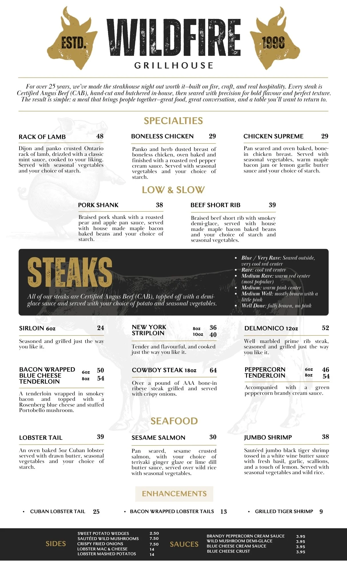 Explore hand-cut steaks, timeless classics, and seasonal features—crafted in-house and served with care.